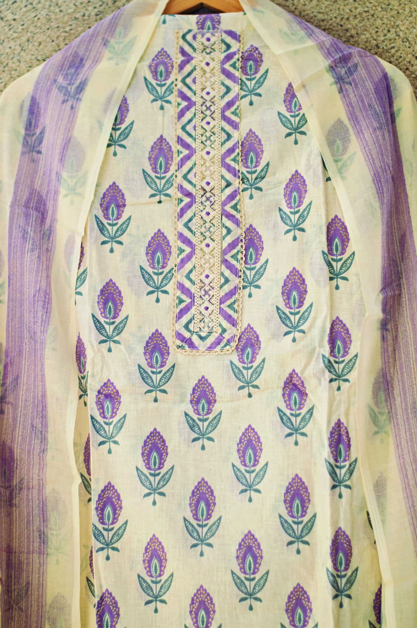 Maa N Mee Ivory-Lavender Printed Kurta Set